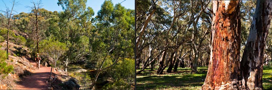 Fluss-Eukalypten wachsen eigentlich am Rande von Gewässern. Der Baum benötigt periodisch auftretenden Überflutungen, kann aber auch lange Trockenzeiten überdauern. Ihr Vorkommen an diesem Ort weist darauf hin, dass unterirdisch Wasser von den Bergen abfließt.