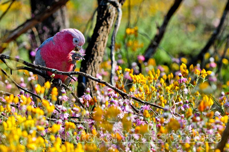 Eine Reihe von Vogelarten kann man hier im Park zu Gesicht bekommen, vom Keilschwanzadler (Wedge-tailed Eagle) über Trappen (Australien Bustard = die schwersten flugfähigen Vögel der Welt) bis zu Rosakakadus (Galah), von Krähenwürger (Pied Butcherbird) bis zu Zebrafinken (Zebra Finches).