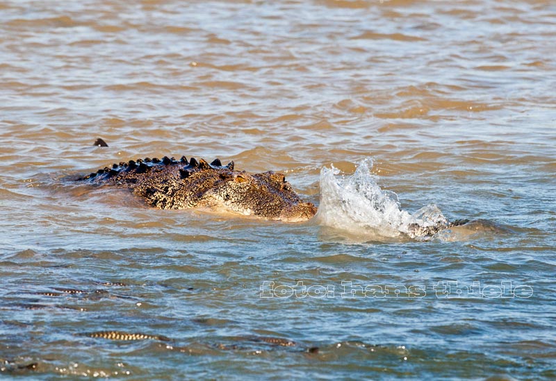An der Barrage des Mary Rivers am Shady Camp im Mary River NP kann man gut bei Springtiden (bei Voll- und bei Neumond) das Jagdverhalten von mittelgroßen bis großen Leistenkrokodilen beobachten. Man benötigt dazu aber viel Zeit und Geduld.