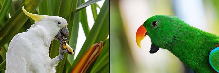 Papageien sind so klug wie Rabenvögel, können unsere Sprache nachahmen, "essen zivilisiert mit der Hand" und sind außerordentlich farbenfrohe und lebhafte Tiere. Es ist kein Wunder, dass Menschen gerade diese Vögel gerne als Haustiere halten. Aber es sind gesellige Tiere, sie gehören nicht hinter Gittern, sondern in ihre heimatlichen Regenwälder oder  Savannen. Und manche endemische, und damit seltene Papageien-Art ist deswegen schon fast ausgerottet worden.